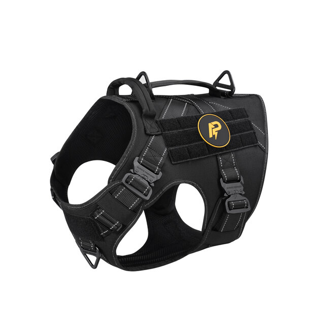 Always Prepared © Pro K9 Hondentuig is heavy duty, gemaakt van 1000D nylon met stevige stiksels voor extra duurzaamheid en draagbaarheid, geschikt voor alle veldgebruik. De schoudergespen kunnen een grote trekkracht dragen, zodat uw hond veilig wordt vastgezet tijdens training, jacht, werk en andere gelegenheden. Goed opgevuld in elk drukbelastingspunt om de huid van uw hond te beschermen, terwijl het ademende luchtgaas uw hond geventileerd en comfortabel houdt!