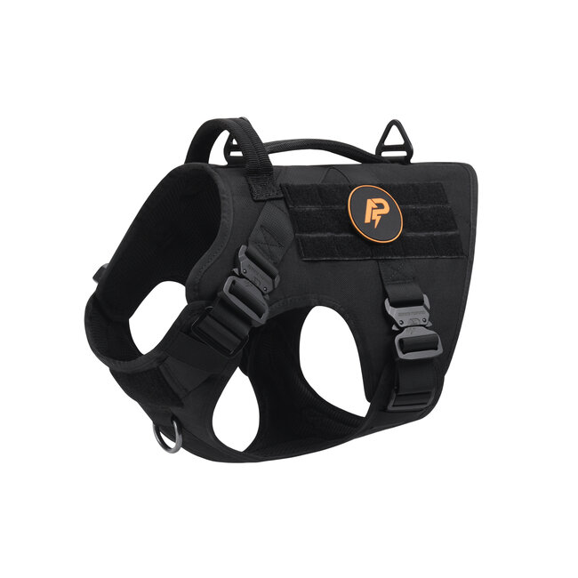 Always Prepared © Pro K9 Hondentuig is heavy duty, gemaakt van 1000D nylon met stevige stiksels voor extra duurzaamheid en draagbaarheid, geschikt voor alle veldgebruik. De schoudergespen kunnen een grote trekkracht dragen, zodat uw hond veilig wordt vastgezet tijdens training, jacht, werk en andere gelegenheden. Goed opgevuld in elk drukbelastingspunt om de huid van uw hond te beschermen, terwijl het ademende luchtgaas uw hond geventileerd en comfortabel houdt!